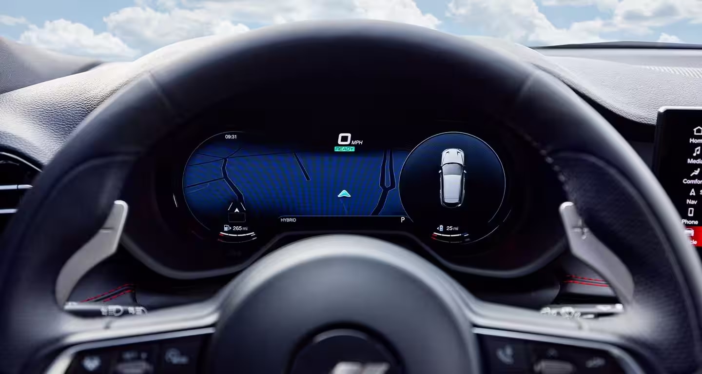 The 2024 Dodge Hornet comes with the user-friendly Uconnect 5 infotainment system, which has sharp graphics and swift responses to inputs. A 10.25-inch touchscreen and a 12.3-inch digital instrument display come standard. The system also comes with wireless Android Auto and Apple CarPlay smartphone integration. Standard driver assistance features in the Hornet include: