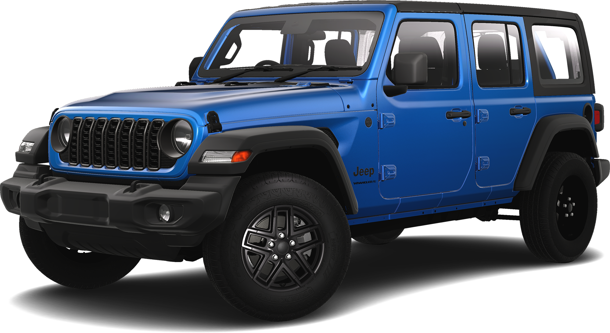 The 2025 Jeep Wrangler Sport is a rugged and capable SUV designed for off-road enthusiasts and everyday adventurers alike. It features a 3.6-liter V6 engine delivering 285 horsepower and 260 lb-ft of torque, paired with a 6-speed manual transmission and part-time four-wheel drive for enhanced trail performance. With a combined fuel economy of 19 MPG and a towing capacity of up to 2,000 lbs, it balances power with practicality. The Wrangler Sport seats four and offers a cargo capacity of 12.9 cubic feet, expandable to 31.7 cubic feet with the rear seats folded. Safety features include stability and traction control, multiple airbags, and post-collision safety systems