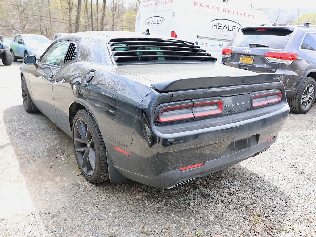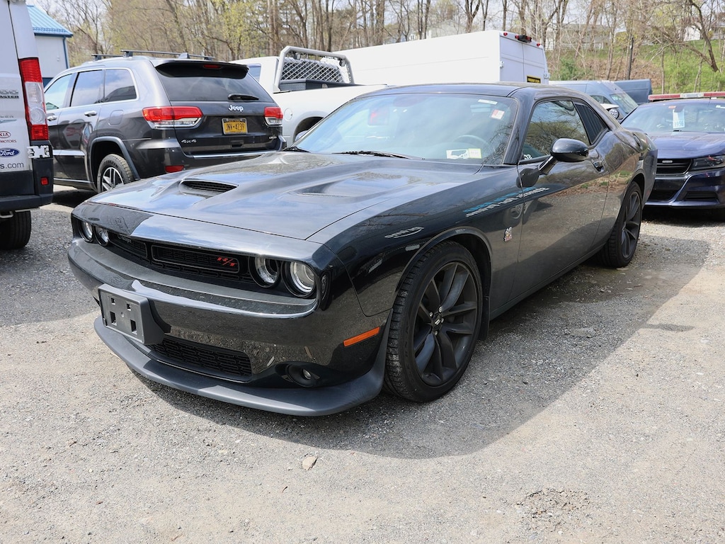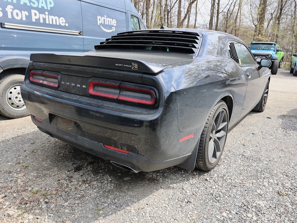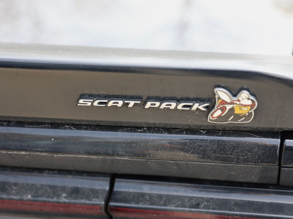 Pitch Black Clearcoat 2019 Dodge Challenger R/T Scat Pack RWD Tremec 6-Speed Manual SRT HEMI 6.4L V8 1-Yr SiriusXM Guardian Trial, 230MM Rear Axle, 4-Wheel Disc Brakes, 4G LTE Wi-Fi Hot Spot, 5-Year SiriusXM Traffic Service, 5-Year SiriusXM Travel Link Service, 6 Speakers, 8.4" Touchscreen Display, ABS brakes, Air Conditioning, Alloy wheels, AM/FM radio: SiriusXM, Anti-whiplash front head restraints, Apple CarPlay, Apple CarPlay/Android Auto, Auto-dimming Rear-View mirror, Automatic temperature control, Blind Spot & Cross Path Detection, Brake assist, Bumpers: body-color, Center Rear 3-Point Seat Belt, Child Seat Upper Tether Anchorages, Compass, Delay-off headlights, Driver Convenience Group, Driver door bin, Driver vanity mirror, Dual front impact airbags, Dual front side impact airbags, Electronic Stability Control, Emergency communication system: SiriusXM Guardian, For Details, Visit DriveUconnect.com, Four wheel independent suspension, Front anti-roll bar, Front Bucket Seats, Front Center Armrest, Front dual zone A/C, Front fog lights, Front Passenger Seat, Front Passenger Seat Belt Alert, Front reading lights, Fully automatic headlights, Garage door transmitter, Google Android Auto, GPS Antenna Input, GPS Navigation, HD Radio, Heated door mirrors, Heated front seats, Heated steering wheel, High-Intensity Discharge Headlamps, Illuminated entry, Integrated Center Stack Radio, Integrated Voice Command w/Bluetooth, Leather Shift Knob, Low tire pressure warning, Media Hub (2 USB, AUX), Outside temperature display, Overhead airbag, Overhead console, Panic alarm, ParkView Rear Back-Up Camera, Passenger door bin, Passenger vanity mirror, Power door mirrors, Power driver seat, Power Multi-Function Foldaway Mirrors, Power steering, Power Sunroof, Power windows, Quick Order Package 23G R/T Scat Pack, Radio data system, Radio: Uconnect 4C w/8.4" Display, Rear anti-roll bar, Rear reading lights, Rear seat center armrest, Rear window defroster, Remote keyless entry, Rhombi 2-Pc Wheel Center Cap, Scat Pack Logo Houndstooth Seat, Security system, SiriusXM Satellite Radio, SiriusXM Traffic Plus, SiriusXM Travel Link, Speed control, Speed-sensing steering, Split folding rear seat, Spoiler, Sport steering wheel, Steering wheel mounted audio controls, Tachometer, Telescoping steering wheel, Tilt steering wheel, Traction control, Trip computer, Uconnect 4C Nav w/8.4" Display, USB Host Flip, Variably intermittent wipers, Wheels: 20" x 9.0" Black Noise.
