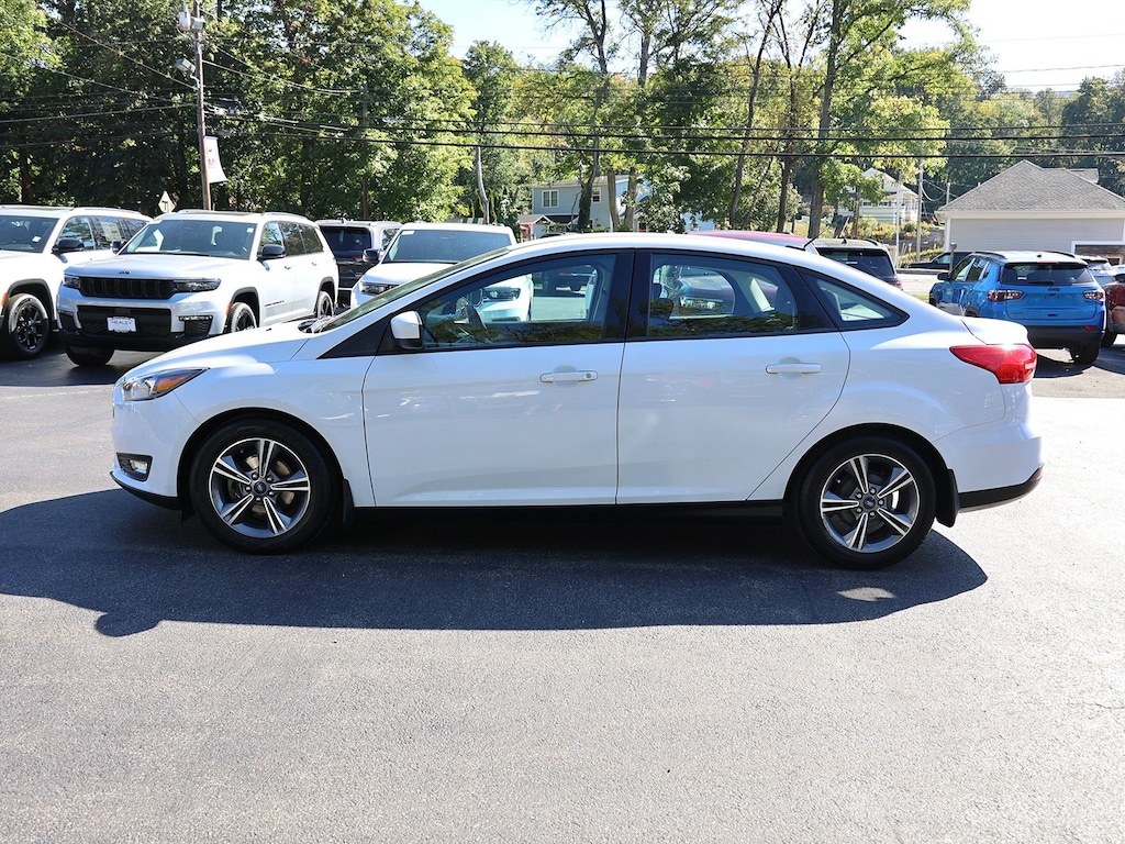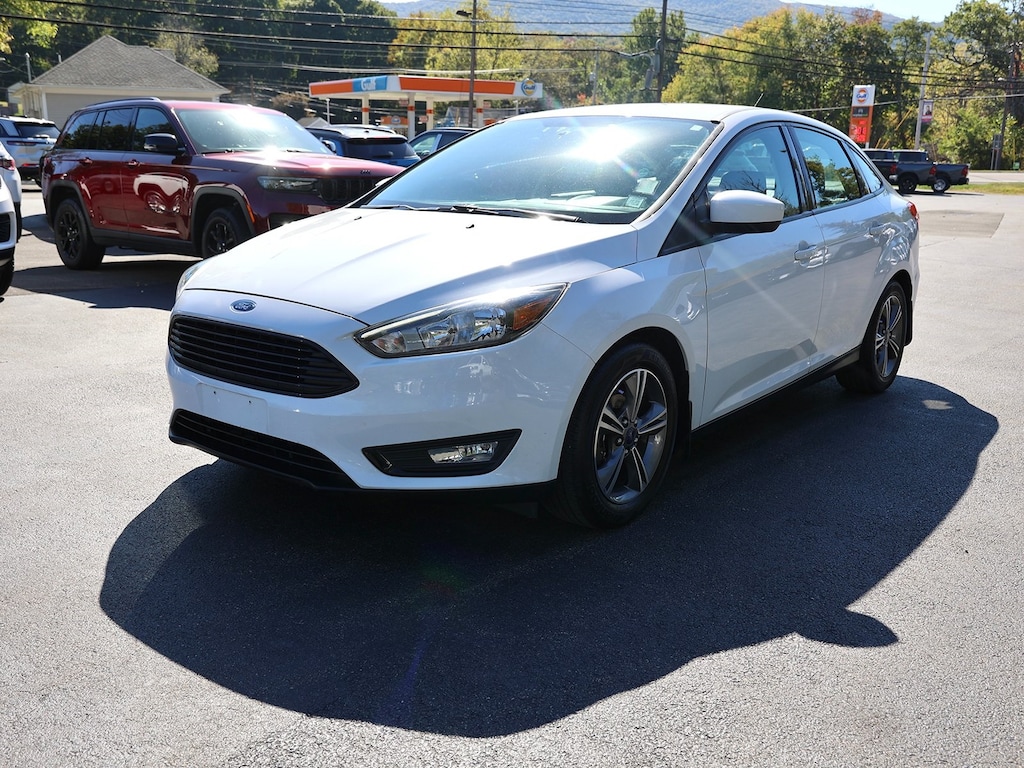 Oxford White 2018 Ford Focus SE FWD 6-Speed Automatic with Powershift 2.0L I4 DGI Ti-VCT 16 Machined Aluminum Wheels, 6 Speakers, ABS brakes, Air Conditioning, Alloy wheels, AM/FM radio: SiriusXM, Black Gloss Upper Grille, Black Headlamp Bezels, Brake assist, Bumpers: body-color, Cloth Front Bucket Seats, Compass, Dedicated Daytime Running Headlamps, Delay-off headlights, Driver door bin, Driver vanity mirror, Dual front impact airbags, Dual front side impact airbags, Electronic Stability Control, Emergency communication system, Equipment Group 200A, Exterior Parking Camera Rear, Fog Lamps, Four wheel independent suspension, Front anti-roll bar, Front Bucket Seats, Front Center Armrest, Front reading lights, Fully automatic headlights, Illuminated entry, Knee airbag, Low tire pressure warning, Occupant sensing airbag, Outside temperature display, Overhead airbag, Overhead console, Panic alarm, Passenger door bin, Passenger vanity mirror, Power door mirrors, Power steering, Power windows, Radio data system, Radio: AM/FM/MP3-Capable, Rear anti-roll bar, Rear window defroster, Remote keyless entry, SE Appearance Package, Speed control, Split folding rear seat, Steering wheel mounted audio controls, SYNC Communications & Entertainment System, Tachometer, Telescoping steering wheel, Tilt steering wheel, Traction control, Trip computer, Variably intermittent wipers, Wheels: 16 Sparkle Silver Painted Aluminum.