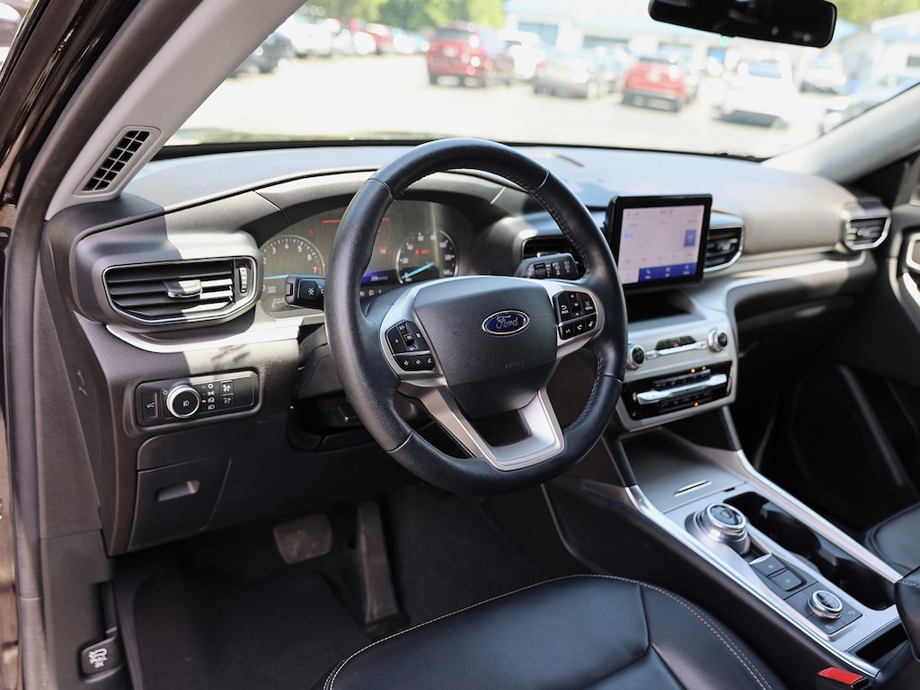 Agate Black Metallic 2022 Ford Explorer XLT 4WD 10-Speed Automatic 2.3L EcoBoost I-4 1st Row Heated Seats, 20 Premium Painted Aluminum Wheels, 3.58 Non-Limited-Slip Rear Axle Ratio, 3rd row seats: bench, 4-Wheel Disc Brakes, 6 Speakers, ABS brakes, Acoustic-Laminated Front Side Windows, ActiveX Captain's Chairs, Air Conditioning, Alloy wheels, AM/FM radio: SiriusXM, AM/FM Stereo, Auto High-beam Headlights, Auto Start-Stop Removal, Automatic temperature control, Brake assist, Bumpers: body-color, Class IV Trailer Tow Package, Compass, Delay-off headlights, Driver door bin, Driver vanity mirror, Dual front impact airbags, Dual front side impact airbags, Electronic Stability Control, Emergency communication system: SYNC 3 911 Assist, Equipment Group 202A, Exterior Parking Camera Rear, FordPass Connect, Four wheel independent suspension, Front anti-roll bar, Front Bucket Seats, Front Center Armrest, Front dual zone A/C, Front reading lights, Fully automatic headlights, Heated door mirrors, Heated front seats, Heated Steering Wheel, Illuminated entry, Knee airbag, Leather steering wheel, LED Fog Lamps, Low tire pressure warning, Occupant sensing airbag, Outside temperature display, Overhead airbag, Overhead console, Panic alarm, Passenger door bin, Passenger vanity mirror, Power door mirrors, Power driver seat, Power Liftgate, Power passenger seat, Power steering, Power windows, Rear air conditioning, Rear anti-roll bar, Rear Auxiliary Controls Credit, Rear reading lights, Rear window defroster, Rear window wiper, Remote keyless entry, Remote Start System, Roof rack: rails only, SecuriCode Keyless Entry Keypad, Security system, Speed control, Speed-sensing steering, Speed-Sensitive Wipers, Split folding rear seat, Spoiler, Steering wheel mounted audio controls, SYNC 3 Communications & Entertainment System, SYNC 3/Apple CarPlay/Android Auto, Tachometer, Telescoping steering wheel, Tilt steering wheel, Traction control, Trip computer, Unique Cloth Captain's Chairs, Variably intermittent wipers, Wheels: 18 5-Spoke Silver-Painted Aluminum.