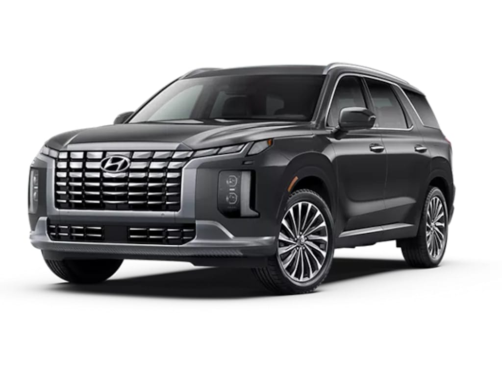 Steel Graphite 2023 Hyundai Palisade SEL AWD 8-Speed Automatic with SHIFTRONIC V6 3.648 Axle Ratio, 3rd row seats: split-bench, 4-Wheel Disc Brakes, 6 Speakers, ABS brakes, Air Conditioning, Alloy wheels, AM/FM radio: SiriusXM, Apple CarPlay & Android Auto, Auto High-beam Headlights, Auto-dimming door mirrors, Auto-dimming Rear-View mirror, Automatic temperature control, Brake assist, Bumpers: body-color, Carpeted Floor Mats, Delay-off headlights, Driver door bin, Driver vanity mirror, Dual front impact airbags, Dual front side impact airbags, Electronic Stability Control, Emergency communication system: Blue Link Connected Car Service (3-year complimentary subscription), Exterior Parking Camera Rear, First Aid Kit, Four wheel independent suspension, Front anti-roll bar, Front Bucket Seats, Front Center Armrest, Front dual zone A/C, Front reading lights, Fully automatic headlights, Garage door transmitter: HomeLink, H-Tex Leatherette Seat Trim, Heated door mirrors, Heated Front Bucket Seats, Heated front seats, Illuminated entry, Knee airbag, Low tire pressure warning, Navigation System, Occupant sensing airbag, Option Group 01, Outside temperature display, Overhead airbag, Overhead console, Panic alarm, Passenger door bin, Passenger vanity mirror, Power door mirrors, Power driver seat, Power Liftgate, Power passenger seat, Power steering, Power windows, Radio data system, Radio: AM/FM/MP3 Audio System, Rear air conditioning, Rear anti-roll bar, Rear audio controls, Rear reading lights, Rear side impact airbag, Rear window defroster, Rear window wiper, Reclining 3rd row seat, Remote keyless entry, Roof Rack Cross Rails (DISC), Security system, Speed control, Speed-sensing steering, Splash Trim, Split folding rear seat, Spoiler, Steering wheel mounted audio controls, Tachometer, Telescoping steering wheel, Tilt steering wheel, Traction control, Trip computer, Turn signal indicator mirrors, Variably intermittent wipers, Wheel Locks, Wheels: 18 x 7.5J Machine-Faced Alloy.