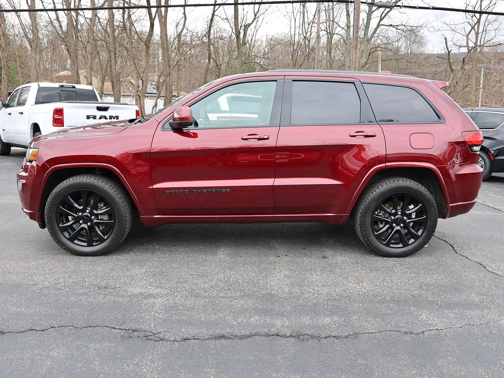 Velvet Red Pearlcoat 2020 Jeep Grand Cherokee Altitude 4WD 8-Speed Automatic 3.6L V6 24V VVT 1-Year SiriusXM Guardian Trial, 115V Auxiliary Power Outlet, 3.45 Rear Axle Ratio, 4-Wheel Disc Brakes, 4G LTE Wi-Fi Hot Spot, 5-Year SiriusXM Traffic Service, 5-Year SiriusXM Travel Link Service, 6 Speakers, 8.4" Touchscreen Display, ABS brakes, Air Conditioning, Alloy wheels, AM/FM radio, Anti-whiplash front head restraints, Apple CarPlay, Apple CarPlay/Android Auto, Auto-Dimming Rear-View Mirror, Automatic temperature control, Body Color Shark Fin Antenna, Brake assist, Bumpers: body-color, Cloth Bucket Seats, Compass, Dark Lens Taillamps, Delay-off headlights, Disassociated Touchscreen Display, Driver door bin, Driver vanity mirror, Dual front impact airbags, Dual front side impact airbags, Electronic Stability Control, For Details Visit DriveUconnect.com, Four wheel independent suspension, Front anti-roll bar, Front Bucket Seats, Front Center Armrest w/Storage, Front dual zone A/C, Front fog lights, Front License Plate Bracket, Front reading lights, Fully automatic headlights, Gloss Black Rear Fascia Applique, Google Android Auto, GPS Antenna Input, GPS Navigation, HD Radio, Heated door mirrors, Illuminated entry, Instrument Cluster w/Off-Road Disp. Pages, Integrated Center Stack Radio, Integrated Voice Command w/Bluetooth, Jeep Black Gloss Badging, Knee airbag, Leather Shift Knob, Low tire pressure warning, Normal Duty Suspension, Occupant sensing airbag, Outside temperature display, Overhead airbag, Overhead console, Panic alarm, ParkView Rear Back-Up Camera, Passenger door bin, Passenger vanity mirror, Power 4-Way Driver Lumbar Adjust, Power 8-Way Driver/Manual Passenger Seat, Power door mirrors, Power steering, Power Sunroof, Power windows, Quick Order Package 2BZ Altitude, Radio data system, Radio: Uconnect 4C Nav w/8.4" Display, Rear anti-roll bar, Rear Fascia Black MIC Step Pad, Rear reading lights, Rear seat center armrest, Rear window defroster, Rear window wiper, Remote keyless entry, Security & Convenience Group, Security Alarm, SiriusXM Satellite Radio, SiriusXM Traffic Plus, SiriusXM Travel Link, Speed control, Speed-sensing steering, Speed-Sensitive Wipers, Split folding rear seat, Spoiler, Steering Wheel Mounted Audio Controls, Steering wheel mounted audio controls, Tachometer, Telescoping steering wheel, Tilt steering wheel, Traction control, Trip computer, Universal Garage Door Opener, USB Host Flip, Variably intermittent wipers, Wheels: 17" x 8.0" Silver Aluminum, Wheels: 20" x 8.0" Gloss Black Aluminum.