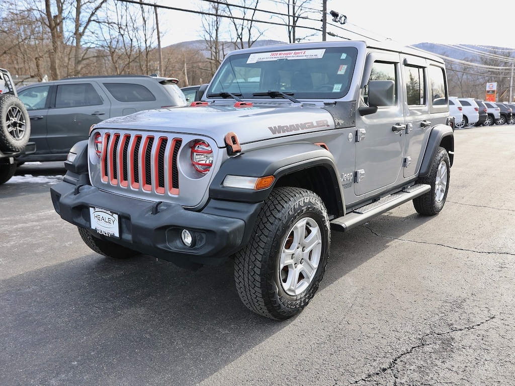 Certified. Billet Silver Metallic Clearcoat 2020 Jeep Wrangler Unlimited Sport S 4WD 8-Speed Automatic 2.0L I4 DOHC 3.45 Rear Axle Ratio, 4-Wheel Disc Brakes, 8 Speakers, ABS brakes, Air Conditioning, AM/FM radio, Automatic Headlamps, Aux Battery, Black 3-Piece Hard Top, Brake assist, Cloth Low-Back Bucket Seats, Cold Weather Group, Compass, Convenience Group, Deep Tint Sunscreen Windows, Delay-off headlights, Driver door bin, Driver vanity mirror, Dual front impact airbags, Dual front side impact airbags, Electronic Stability Control, Freedom Panel Storage Bag, Front 1-Touch Down Power Windows, Front anti-roll bar, Front Bucket Seats, Front Center Armrest w/Storage, Front fog lights, Front reading lights, Heated Front Seats, Heated Steering Wheel, Integrated roll-over protection, Integrated Voice Command w/Bluetooth, Leather Wrapped Steering Wheel, Low tire pressure warning, MOPAR All-Weather Floor Mats (DISC), MOPAR Hardtop Headliner, No Soft Top, Non-Lock Fuel Cap w/o Discriminator, Normal Duty Suspension, Occupant sensing airbag, Outside temperature display, ParkView Rear Back-Up Camera, Passenger door bin, Passenger vanity mirror, Power Heated Mirrors, Power steering, Quick Order Package 22S Sport S, Radio data system, Radio: Uconnect 3 w/5 Display, Rear anti-roll bar, Rear reading lights, Rear Window Defroster, Rear Window Wiper/Washer, Remote Keyless Entry, Security Alarm, Speed control, Speed Sensitive Power Locks, Split folding rear seat, Steering wheel mounted audio controls, Stop-Start Dual Battery System, Sun Visors w/Illuminated Vanity Mirrors, Tachometer, Telescoping steering wheel, Tilt steering wheel, Traction control, Trip computer, Universal Garage Door Opener, Variably intermittent wipers, Wheels: 17 x 7.5 Black Steel Styled, Wheels: 17 x 7.5 Tech Silver Aluminum.
