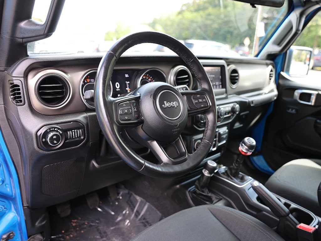 Certified. Hydro Blue Pearlcoat 2021 Jeep Gladiator Sport 4WD 6-Speed Manual 3.6L V6 24V VVT 110 mph Vehicle Max Speed Calibration, 240 Amp Alternator, 3.73 Rear Axle Ratio, 4-Wheel Disc Brakes, 7.0 Touch Screen Display, 8 Speakers, ABS brakes, Air Conditioning, Air Conditioning w/Auto Temperature Control, AM/FM radio, Anti-Lock 4-Wheel Disc Heavy Duty Brakes, Apple CarPlay, Automatic Headlamps, Black 3-Piece Hard Top, Body Color Fender Flares (2-Piece), Brake assist, Class IV Hitch Receiver, Cloth Low-Back Bucket Seats, Cluster 7.0 TFT Color Display, Cold Weather Group, Compass, Convenience Group, Daytime Running Lamp System, Deep Tint Sunscreen Windows, Delay-off headlights, Driver door bin, Driver vanity mirror, Dual front impact airbags, Dual front side impact airbags, Electronic Stability Control, For More Info, Call 800-643-2112, Freedom Panel Storage Bag, Front 1-Touch Down Power Windows, Front anti-roll bar, Front Bucket Seats, Front Center Armrest w/Storage, Front fog lights, Front reading lights, Google Android Auto, GPS Antenna Input, Heavy-Duty Engine Cooling, Integrated Center Stack Radio, Integrated roll-over protection, Integrated Voice Command w/Bluetooth, Leather Wrapped Steering Wheel, Low tire pressure warning, MOPAR Spray In Bedliner, No Soft Top, Normal Duty Plus Suspension, Normal Duty Suspension, Occupant sensing airbag, Outside temperature display, ParkView Rear Back-Up Camera, Passenger door bin, Passenger vanity mirror, Popular Equipment Package, Power Heated Mirrors, Power steering, Power Tailgate Lock, Quick Order Package 23S Sport S, Radio data system, Radio: Uconnect 3 w/5 Display, Radio: Uconnect 4 w/7 Display, Rear anti-roll bar, Rear reading lights, Rear Sliding Window, Rear Window Defroster, Remote Keyless Entry, Security Alarm, Side Steps, SiriusXM Radio Service, SiriusXM Satellite Radio, Speed control, Speed Sensitive Power Locks, Split folding rear seat, Sport S, Steering wheel mounted audio controls, Sun Visors w/Illuminated Vanity Mirrors, Tachometer, Technology Group, Telescoping steering wheel, Tilt steering wheel, Traction control, Trailer Hitch Zoom, Trailer Tow Package, Trip computer, USB Host Flip, Variably intermittent wipers, Wheels: 17 x 7.5 Black Steel Styled, Wheels: 17 x 7.5 Tech Silver Alum (DISC).