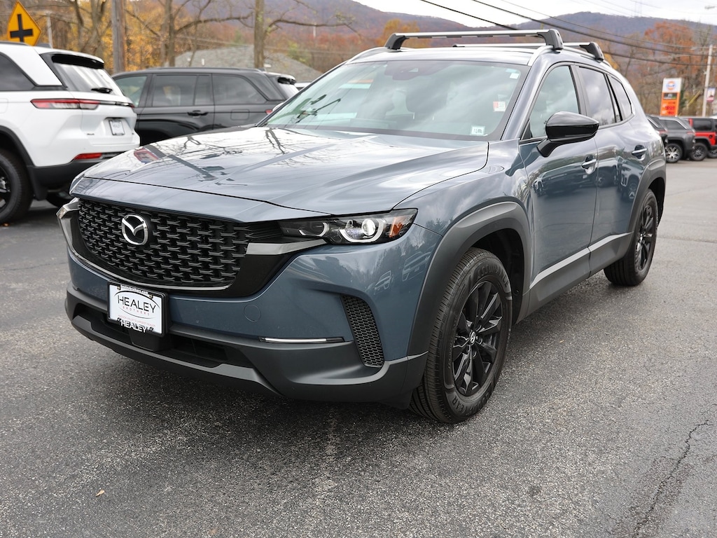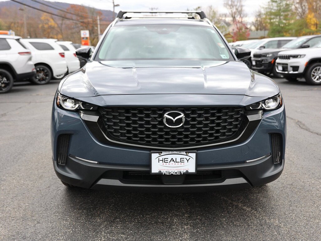 Polymetal Gray Metallic 2024 Mazda CX-50 2.5 S Premium Package AWD 6-Speed Automatic SKYACTIV® 2.5L 4-Cylinder DOHC 16V 12 Speakers, 4-Wheel Disc Brakes, 4.367 Axle Ratio, ABS brakes, Air Conditioning, Alloy wheels, AM/FM radio: SiriusXM, AppLink/Apple CarPlay and Android Auto, Auto High-beam Headlights, Automatic temperature control, Brake assist, Bumpers: body-color, Cargo Blocks, Cargo Package, Delay-off headlights, Driver door bin, Driver vanity mirror, Dual front impact airbags, Dual front side impact airbags, Electronic Stability Control, Emergency communication system: MAZDA CONNECT, Exterior Parking Camera Rear, Front anti-roll bar, Front Bucket Seats, Front Center Armrest, Front dual zone A/C, Front reading lights, Front wheel independent suspension, Fully automatic headlights, Half Leatherette Seat Trim, Heated door mirrors, Heated Front Bucket Seats, Heated front seats, Illuminated entry, Knee airbag, Leather Shift Knob, Leather steering wheel, Low tire pressure warning, Occupant sensing airbag, Outside temperature display, Overhead airbag, Overhead console, Panic alarm, Passenger door bin, Passenger vanity mirror, Polymetal Gray Metallic Paint Charge, Power door mirrors, Power driver seat, Power Liftgate, Power moonroof, Power steering, Power windows, Radio data system, Radio: AM/FM/HD Audio System, Rain sensing wipers, Rear seat center armrest, Rear window defroster, Rear window wiper, Remote keyless entry, Silver Cross Bars, Speed control, Speed-sensing steering, Split folding rear seat, Spoiler, Steering wheel mounted audio controls, Tachometer, Telescoping steering wheel, Tilt steering wheel, Traction control, Trip computer, Turn signal indicator mirrors, Variably intermittent wipers, Wheels: 17 x 7J Aluminum Alloy.